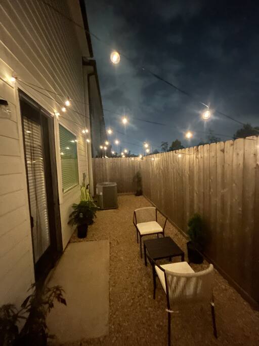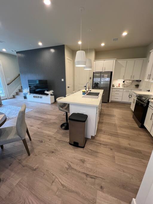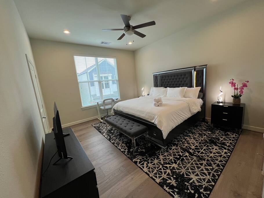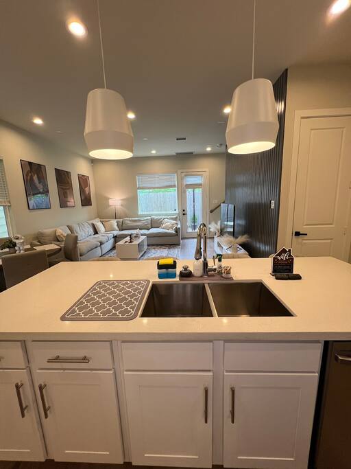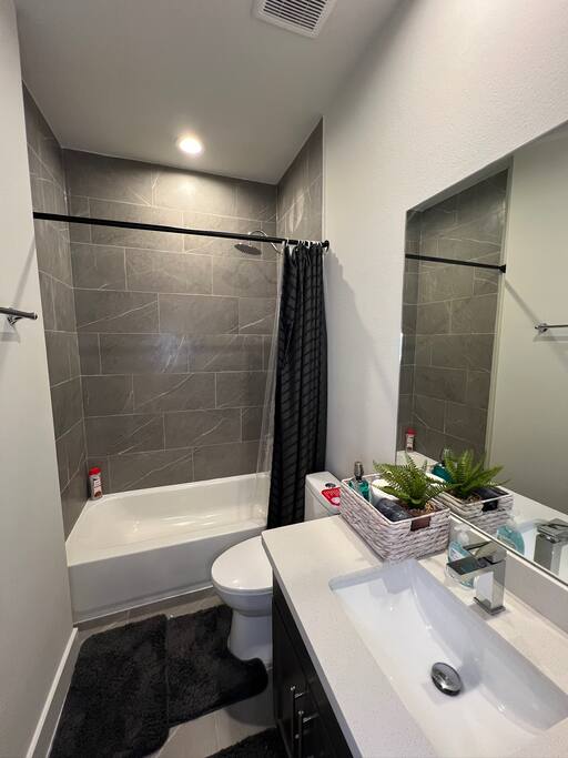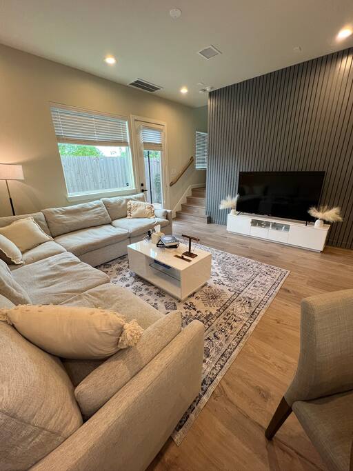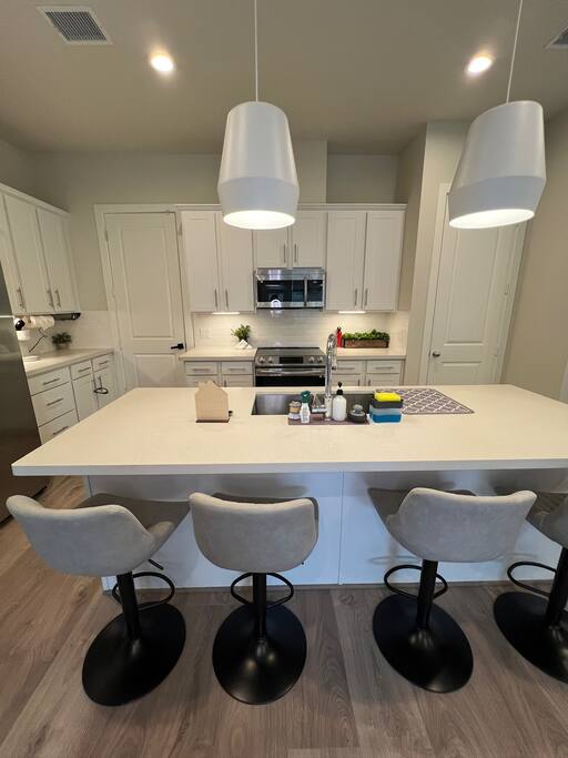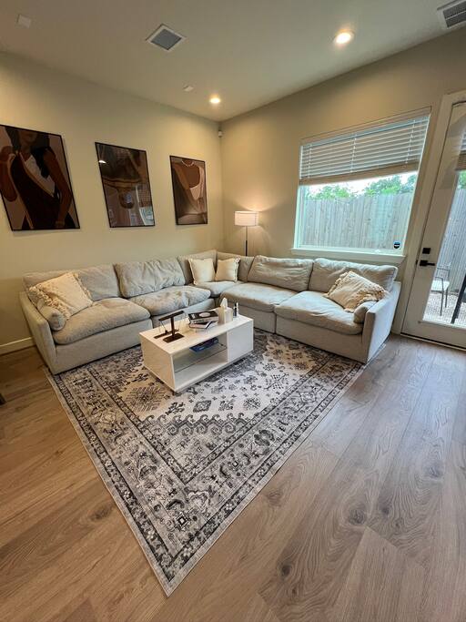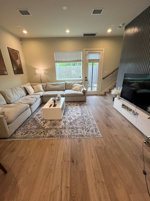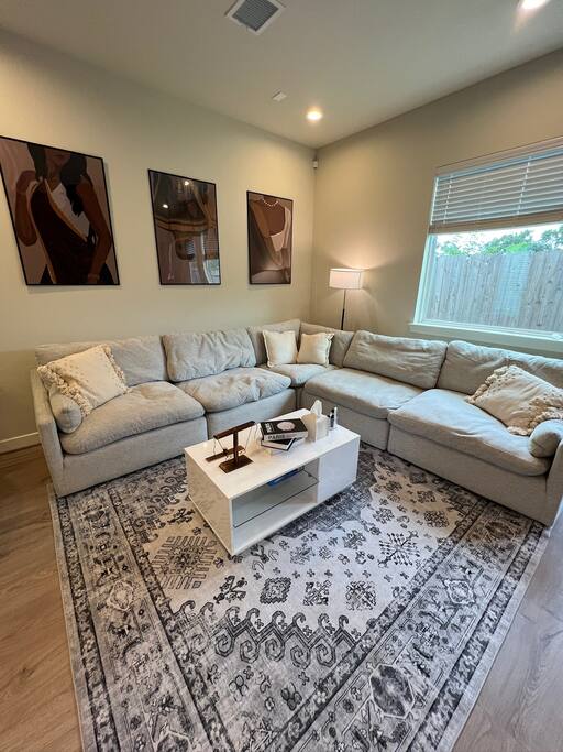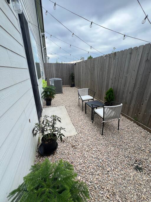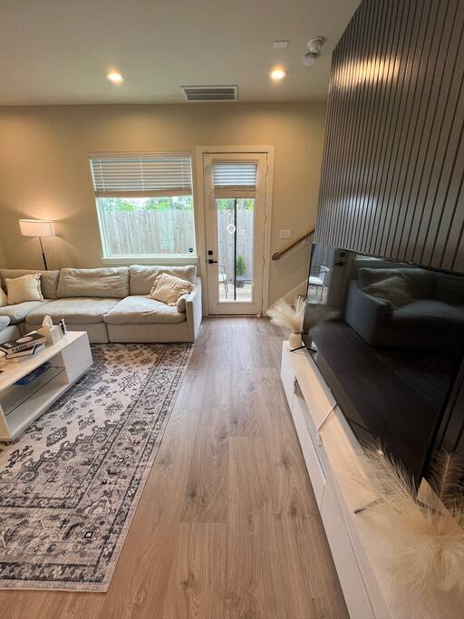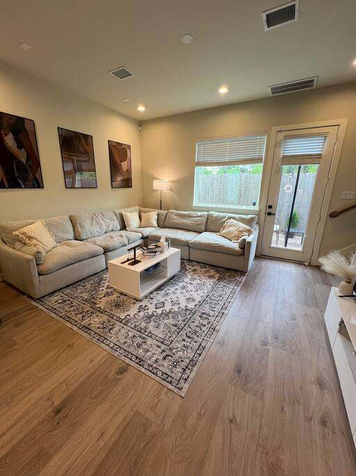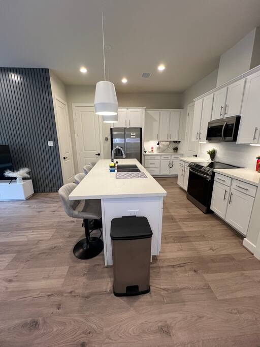 This beautifully designed 3 bedroom, 2.5 bathroom home offers a comfortable and stylish stay in a secure gated community. Whether you’re visiting Houston for a family getaway, a girls’ weekend, or a special celebration, this home provides the space, comfort, and amenities to make your stay memorable. 🛏️ Sleeping Arrangements All bedrooms are located upstairs and come with fresh bedding, pillows, and blankets to ensure a restful night’s sleep. Bedroom 1 (Primary Suite): King bed, Roku TV Bedroom 2: Queen bed Bedroom 3: Queen bed 🛋️ Living Spaces Living Room features a plush Cloud style sectional couch, accent wall, and Roku smart TV. Perfect for relaxing after a day in the city. Dining Room includes a round dining table with seating for four, ideal for meals, work, or game nights. 🍽️ Kitchen The kitchen is fully equipped and ready for all your cooking needs. It includes a full size oven, stove, microwave, refrigerator, and a Keurig coffee maker with starter K-Cups. The space is stocked with pots, pans, utensils, dishes, and glassware. Whether you’re preparing a quick breakfast or a full dinner, everything you need is here. 🚗 Parking and Community Access The home is located in a gated community, offering added safety and privacy. Entry instructions including the gate code will be sent prior to check-in. Parking is limited to two vehicles inside the garage only. There is no driveway or street parking allowed, so please plan accordingly and carpool if necessary. 🌿 Backyard Retreat Step out into a small private backyard with a charming seating area for two and overhead string lights to set the mood for an evening chat or quiet coffee in the morning. Please note the backyard is an outdoor space and may naturally have some insects or dust depending on the weather and season.
