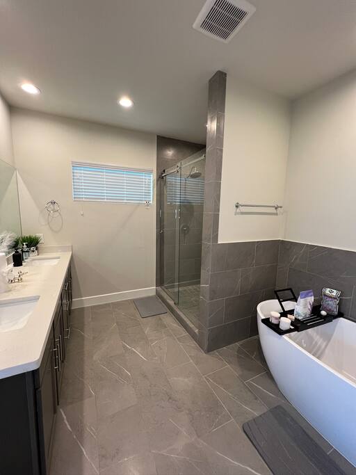 Discover Urban Nest HTX, a stylish and peaceful retreat in Independence Heights. Unwind on the comfy cloud couch, stretch out in the plush king bed, and enjoy the luxurious bathroom with a soaking tub and walk-in shower. The space is thoughtfully designed for comfort and relaxation, with a private backyard perfect for morning coffee or evening wind-downs. Ideal for couples, solo stays, families, or work trips.